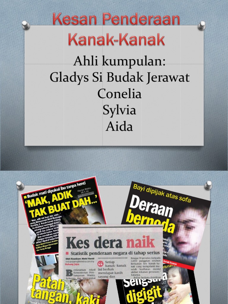 40 KESAN PENDERAAN KANAK-KANAK Penderaan kanak-kanak meninggalkan banyak kesan kepada pendera mangsa dan masyarakatPenderaan ini mampu memberi. Penderaan kanak-kanak didefinisikan sebagai satu pencabulan atau pelanggaran yang serius terhadap hak kanak-kanak untuk berkembang dalam ke adaan sihat dan berma ruah di. Ini dibandingkan dengan kes penderaan di mana terdapat pendarahan di dalam otak kanak-kanak tidak sihat dan boleh mengakibatkan kematian.